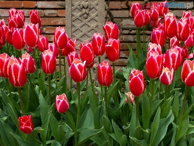 Liście, Cegły, Kwiaty, Tulipany, Murek