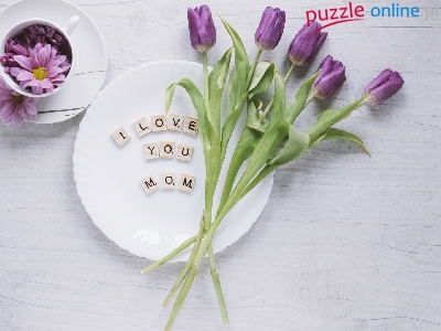 Bukiet, Margerytki, Napis, Fioletowe, Talerzyk, Dzień Maki, Tulipany, Filiżanka