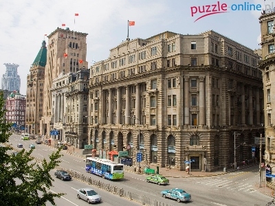 Szanghaj, Budynki, Autobus, Ulica, Chiny, Miasto, Samochody