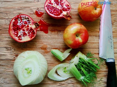 Puzzle Owoce, Deska, Nóż, Granaty