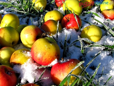 Puzzle Śnieg, Jabłka, Trawa
