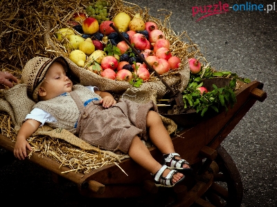 Puzzle Owoce, Śpiące, Dziecko, Taczka