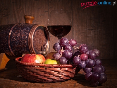 Winogrona, Miniaturowa, Koszyczek, Beczka, Kompozycja, Kieliszek, Jabłka
