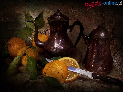 Puzzle Nóż, Kompozycja, Pomarańcze, Dzbanki