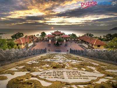 Roślinność, Chmury, Wietnam, Świątynia, Wschód słońca