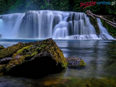 Osada Cougar, Omszałe, Las, Stany Zjednoczone, Wodospad Lower Lewis River Falls, Stan Waszyngton, Kamienie