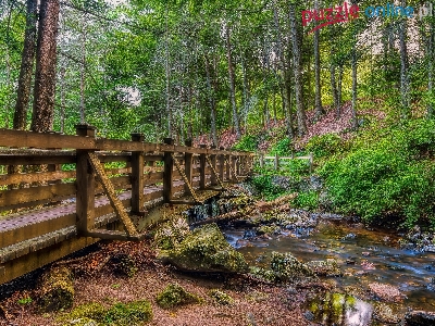 Drewniany, Kamienie, Las, Rzeka, Mostek