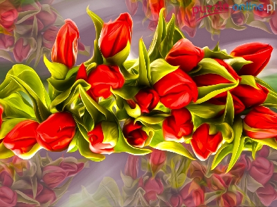 Puzzle Czerwone, Tulipany, Grafika