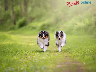 Puzzle Owczarki szetlandzkie, Psy, Biegnące, Trawa