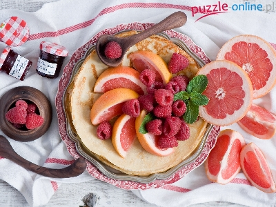 Grejpfrut, Owoce, Naleśniki, Jedzenie, Maliny, Placki