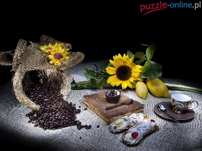 Cytryny, Ziarna, Ciastka, Słoneczniki, Kawy, Filiżanka