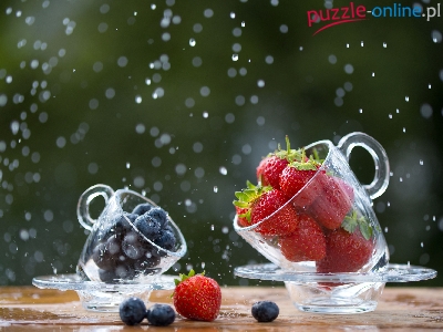 Puzzle Truskawki, Szklane, Filiżanki, Borówki
