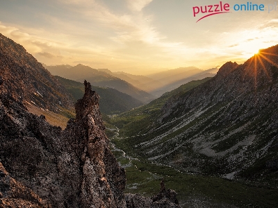 Puzzle Dolina, Góry, Szczyty, Promienie słońca