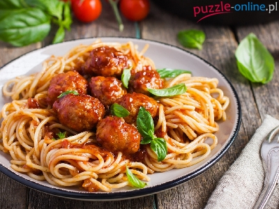 Pulpety, Sztućce, Makaron, Sos, Talerz