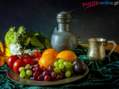 Puzzle Dzbanek, Pomarańcze, Winogrona, Kompozycja