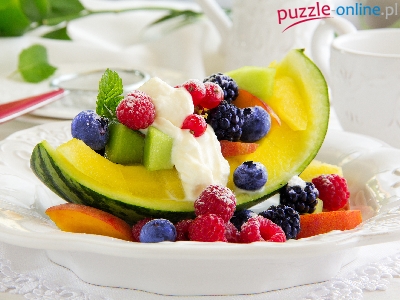 Puzzle Maliny, Żółty, Arbuz, Owoce