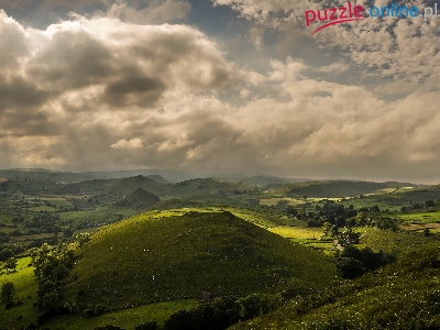 Pola, Anglia, Drzewa, Hrabstwo Derbyshire, Wzgórza, Wieś Earl Sterndale, Chmury