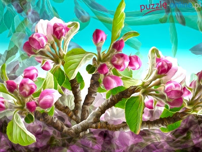 Puzzle Jabłoń, Grafika, Gałązka, Kwiaty