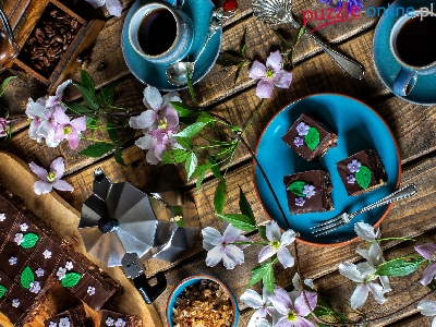 Kwiaty, Kawa, Ciasto, Kompozycja