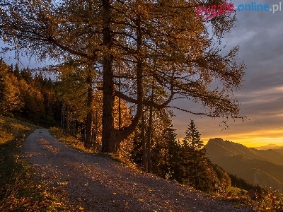 Reichraming, Zachód słońca, Zbocze, Droga, Las, Austria, Drzewa, Góry