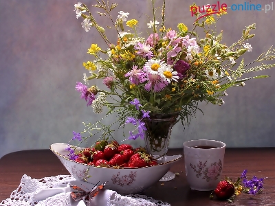 Puzzle Flakon, Polne, Kwiaty, Truskawki