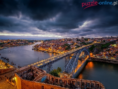 Most Ponte Dom Luis I, Porto, Chmury, Portugalia, Rzeka Duero, Ciemne
