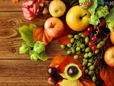Liście, Jesień, Jabłka, Kasztany, Kompozycja