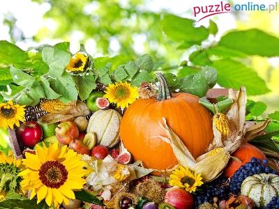 Słonecznik, Kompozycja, Warzywa, Dynia, Kukurydza