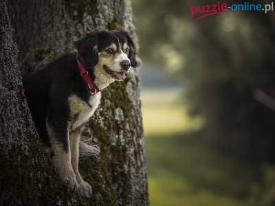 Puzzle Drzewo, Pies, Kundelek, Bokeh