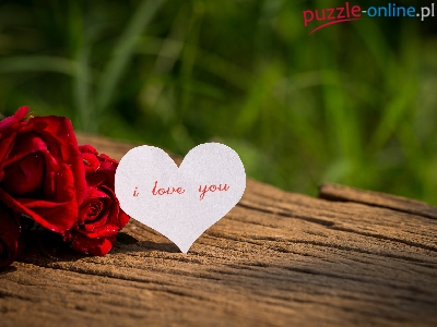 Napis, Miłosne, Róże, Serce, I love you