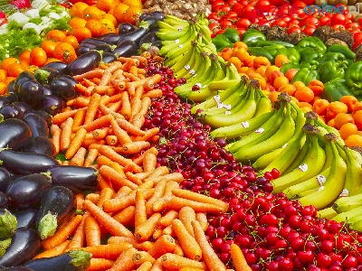 Marchew, Banany, Papryka, Bakłażany, Stragan, Warzywa, Kiwi, Pomidory, Owoce, Czereśnia, Pomarańcza