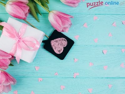 Serduszka, Walentynki, Tulipany, Prezent, Deski