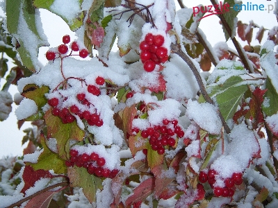 Puzzle Liście, Śnieg, Owoce Ośnieżone
