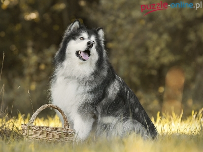 Puzzle Trawa, Pies, Alaskan malamute, Kosz