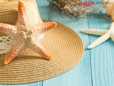 Puzzle Niebieskie, Kapelusz, Rozgwiazdy, Deski
