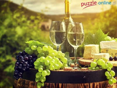 Dwa, Winogrona, Beczka, Butelka, Wino, Kieliszki, Sery