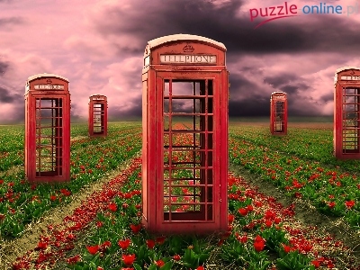 Tulipany, Telefoniczne, Pole, Czerwone, Budki