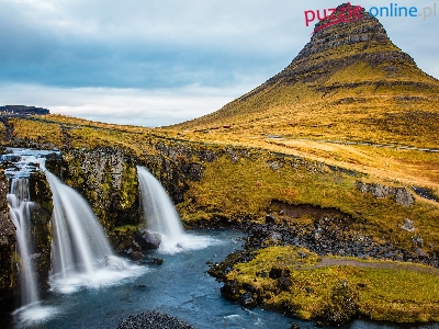 Puzzle Wodospad Kirkjufellsfoss,  Islandia, Półwysep Snaefellsnes, Góra Kirkjufell