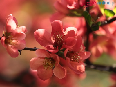 Puzzle Czerwone, Krzew, Pigwowiec, Kwiaty