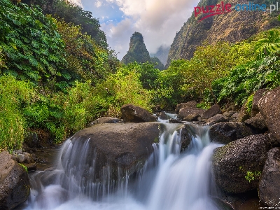 Potok Iao Valley, Roślinność, Hawaje, Wyspa Maui, Skały