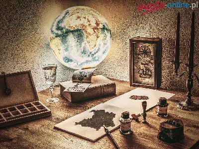 Książka, Kieliszek, Świecznik, Mapa, Tusze, Globus, Kompas, Świece