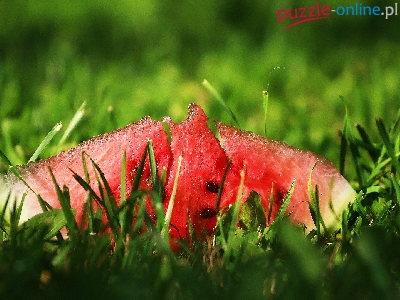 Trawa, Tło, Arbuz, Kawałek, Rozmyte