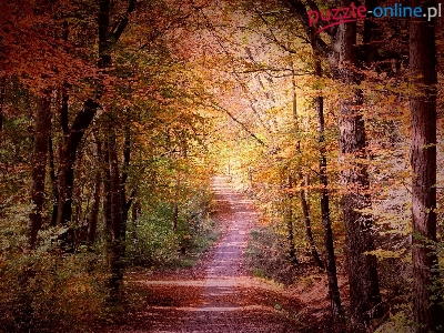 Droga, Las, Dzień, Jesień, Drzewa, Słoneczny