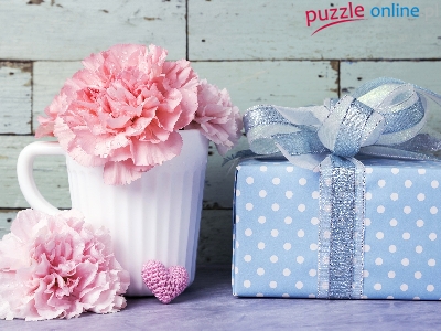 Kubek, Prezent, Kwiat, Goździki, Serce