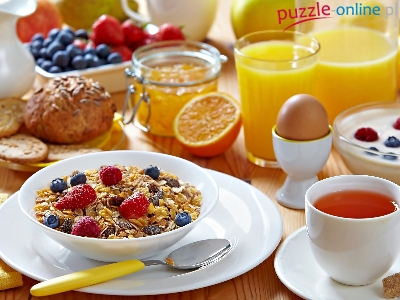 Pieczywo, Herbata, Jajko, Dżem, Borówki, Śniadanie, Truskawki, Musli