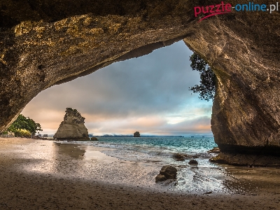 Jaskinia, Nowa Zelandia, Region Waikato, Skały, Zatoka Cathedral Cove, Morze, Półwysep Coromandel