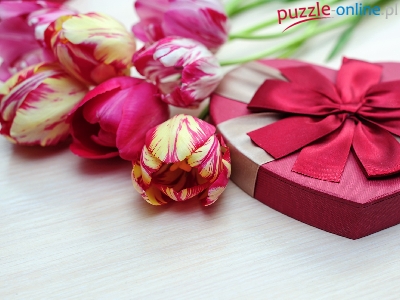 Puzzle Prezent, Czerwono-żółte, Tulipany, Walentynki