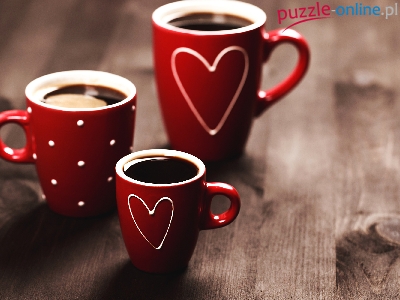 Czerwone, Serduszka, Deski, Kawa, Trzy, Kubki, Kropeczki