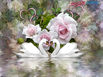 Puzzle Kwiaty, Grafika, Łabędzie, Serca