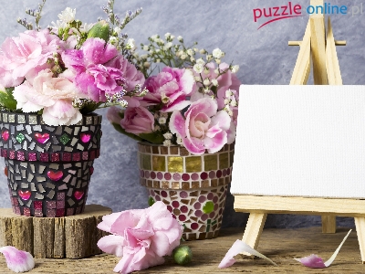 Doniczki, Kompozycja, Kwiaty, Goździki Szabo, Tablica